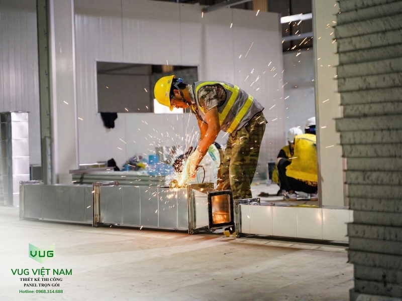 Panel được sản xuất thành từng tấm theo kích thước tiêu chuẩn và trọng lượng nhẹ, giúp quá trình thi công diễn ra nhanh chóng. Sau khi hoàn thiện phần khung sườn, kỹ thuật viên chỉ cần dựng panel và kết nối chúng bằng ngàm âm – dương hoặc khóa camlock.